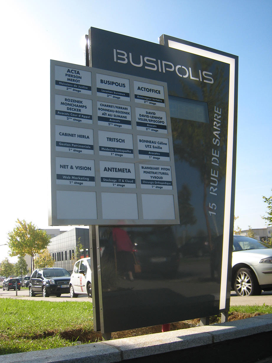 • totem de signalisation intérieur ou extérieur, fixe ou mobile, galbé ou plat;